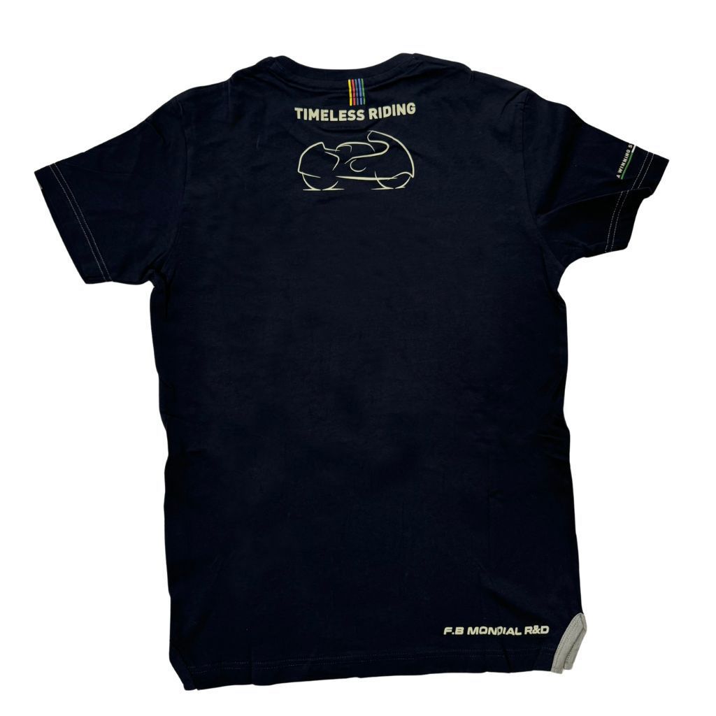 Mostra il tuo amore per la tua moto anche fuori dalla strada con la nostra T-shirt FB Mondial Blu, perfetta per gli appassionati di due ruote. Un capo comodo, elegante e ideale per esprimere il tuo stile sia in moto che nella vita quotidiana.