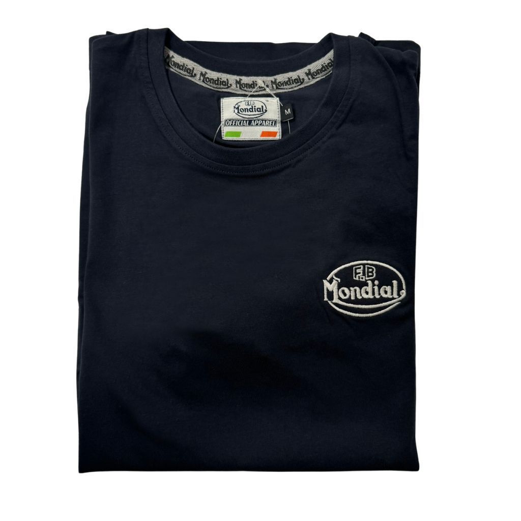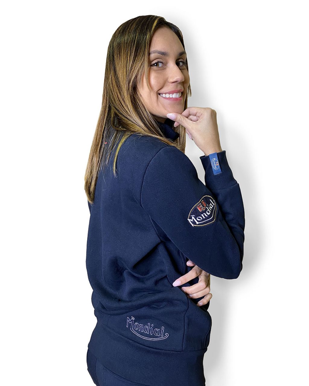 Felpa FB Mondial blue scuro in cotone con colletto coreana cerniera anteriore loghi ricamati su polsino e su spalla.