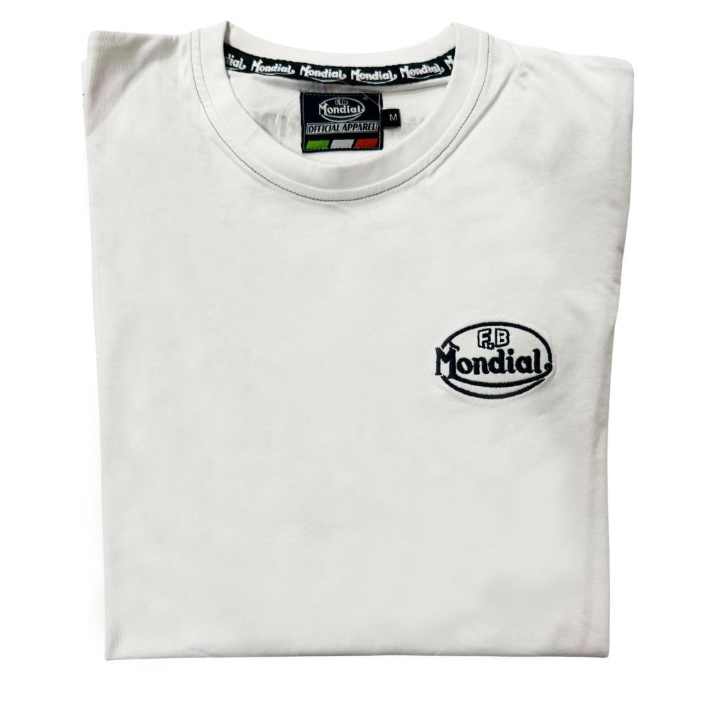 Mostra il tuo amore per la tua moto anche fuori dalla strada con la nostra T-shirt FB Mondial Bianca, perfetta per gli appassionati di due ruote. Un capo comodo, elegante e ideale per esprimere il tuo stile sia in moto che nella vita quotidiana.